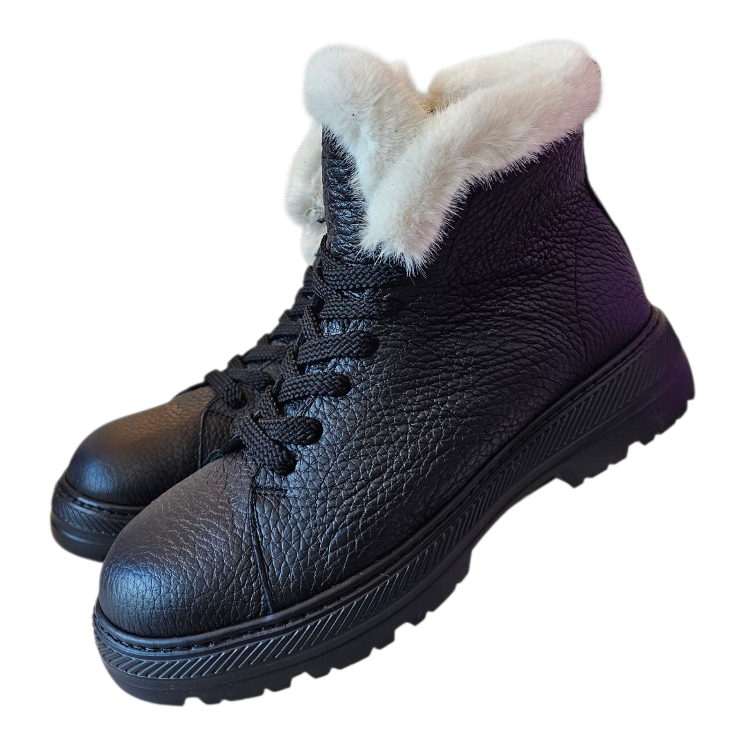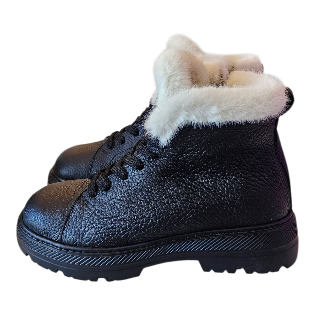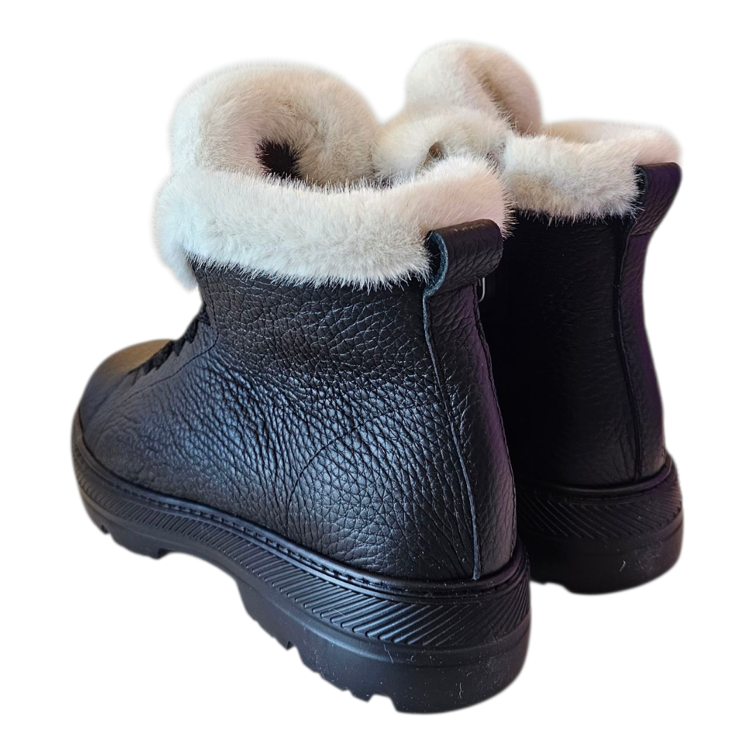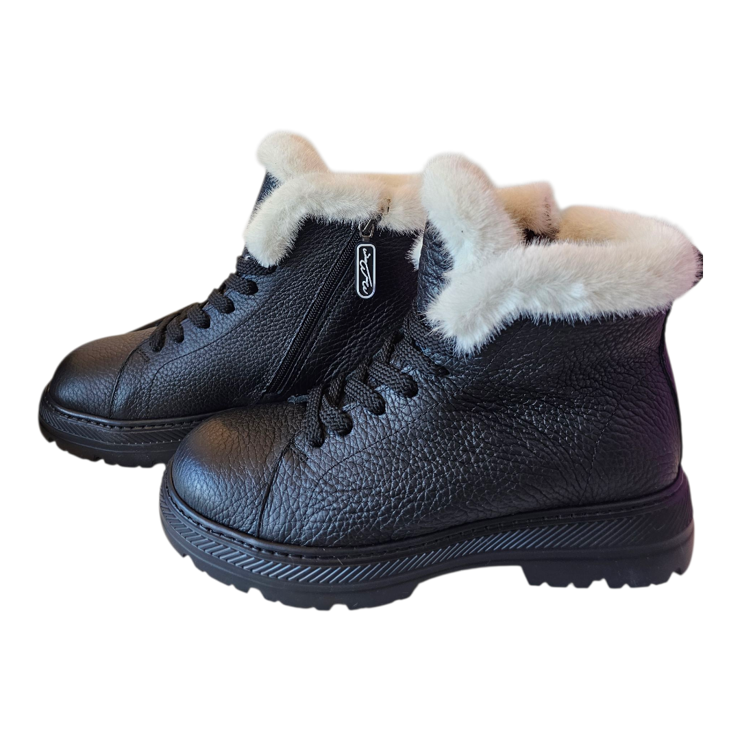 Juodi, iš ypač minkštos ir malonios odos aulinukai su šiltu kailiu. Šone esantis užtrauktukas užtikrina patogų avėjimą, o netradicinis dizainas, kai iš aulinuko subtiliai matosi baltas, dekoratyviai puoštas audinės kailis, suteikia išskirtinumo ir prabangos pojūtį. Stilingas pasirinkimas, ieškantiems šilumos, komforto ir elegancijos viename.