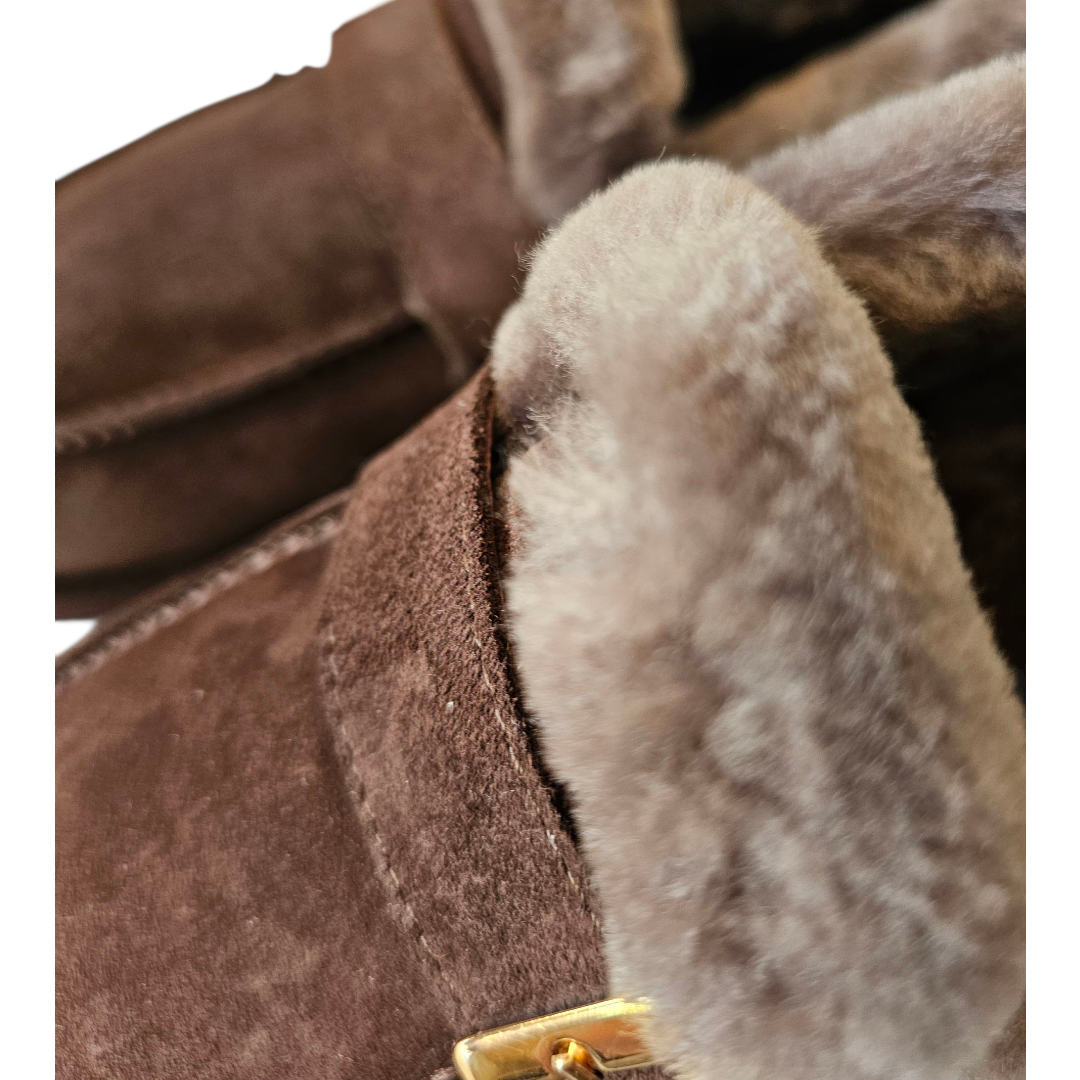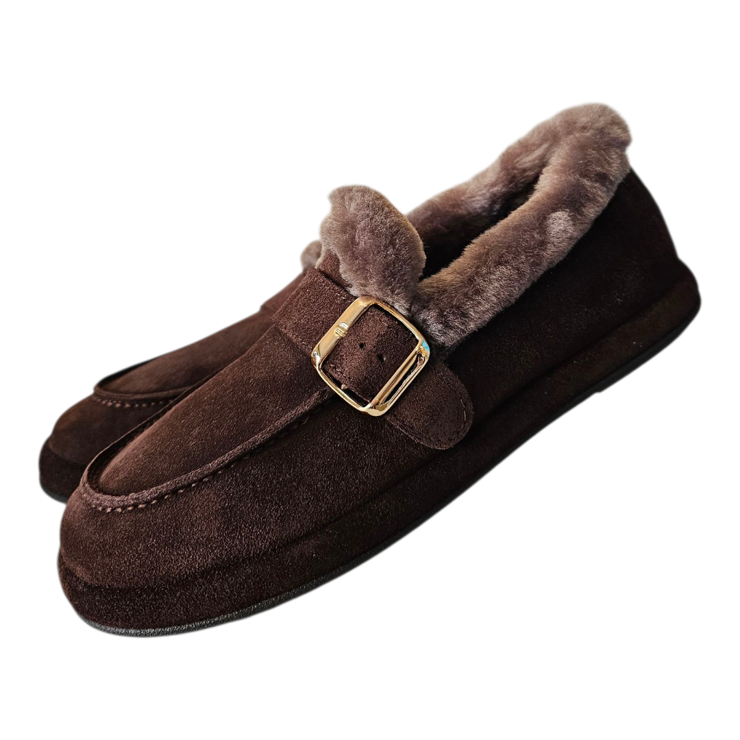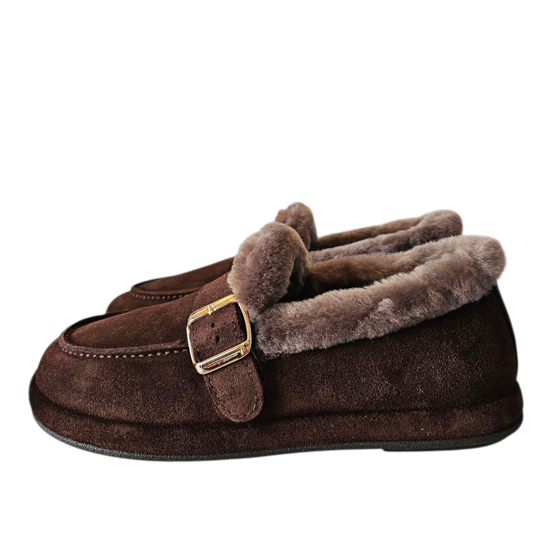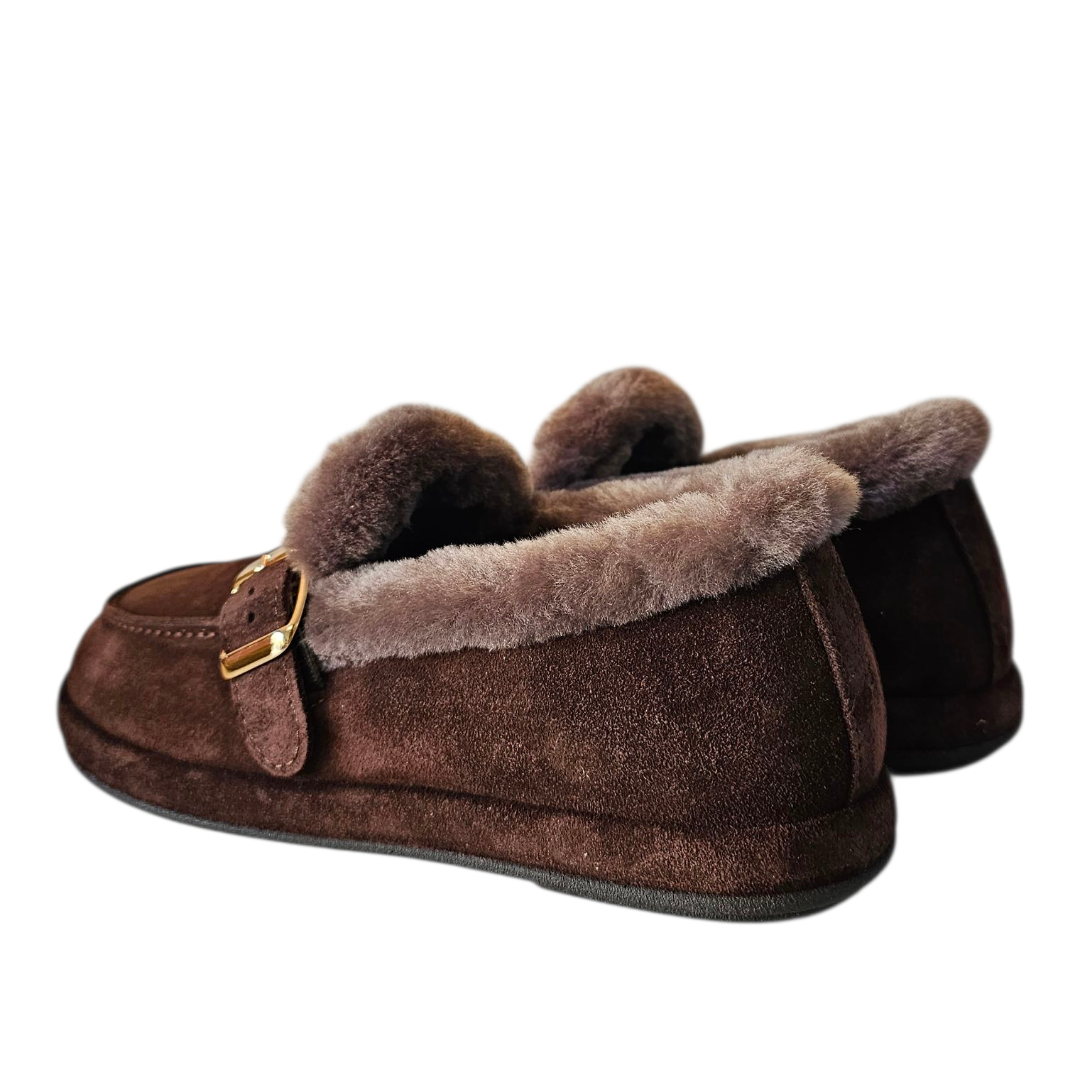 Prabangūs verstos odos bateliai, išsiskiriantys sodria juodojo šokolado spalva ir elegantišku dizainu. Vidus pašiltintas natūraliu kailiu, todėl jie ne tik stilingi, bet ir ypač šilti bei komfortiški. Subtilus dirželis su aukso spalvos sagtimi suteikia išskirtinumo bei moteriško žavesio. Puikus pasirinkimas ieškančioms prabangos, kokybės ir patogumo viename.