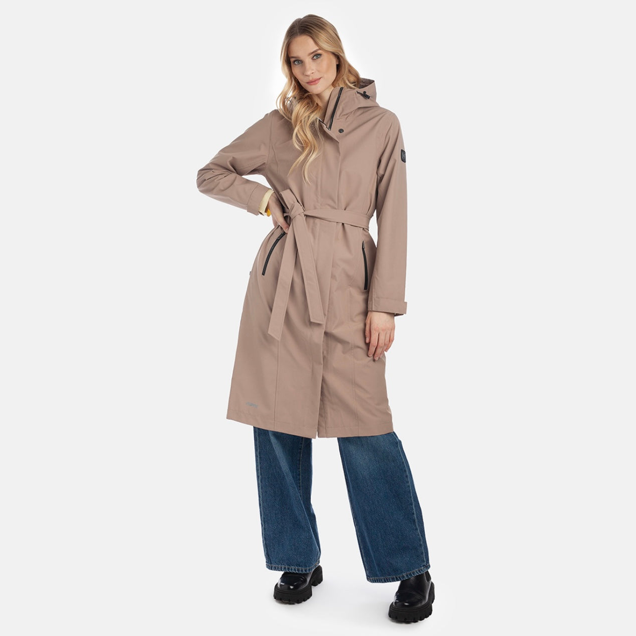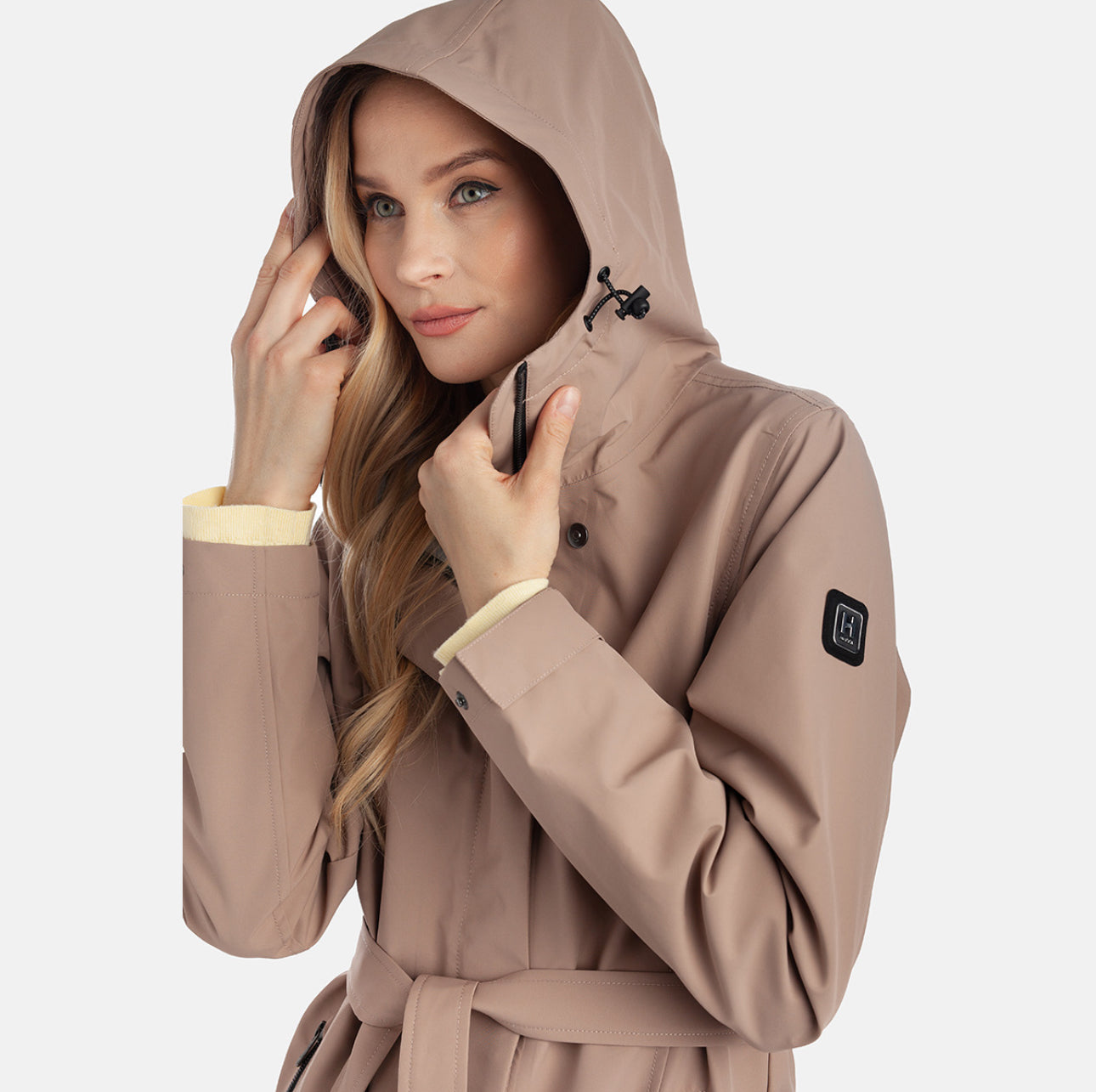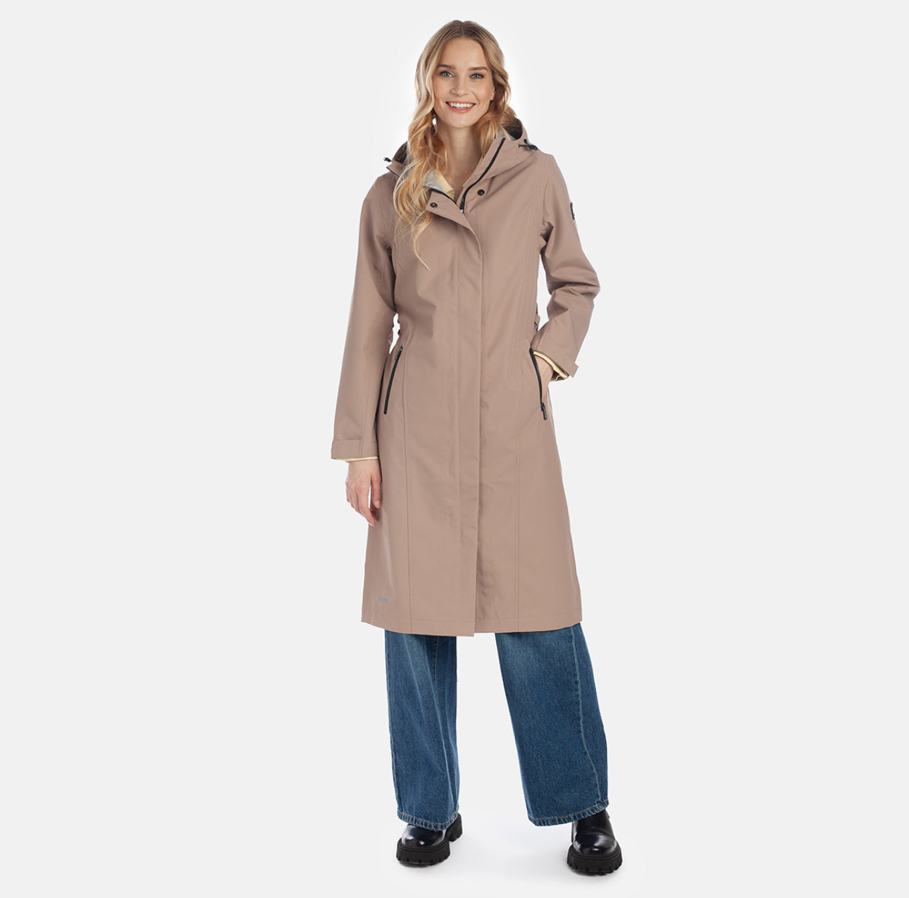 Didžiausia inovacija ShellProtect audinio moteriškas paltas nuo vėjo ir lietaus, tačiau puikiai kvepuojantis. Inovacija ShellProtect trijų sluoksnių audinys, kuriam nebereikia pamušalo. Reguliuojamas gobtuvas ir rankogaliai. Visos siūlės apsaugotos papildomai, kad būtumėt sausos net didžiausio lietaus metu. Dviejų krypčių užtrauktukas priekyje su užspaudžiamu užsegimu. Atspindinčios detalės saugumui užtikrinti. Palto audinys yra draugiškas gamtai.