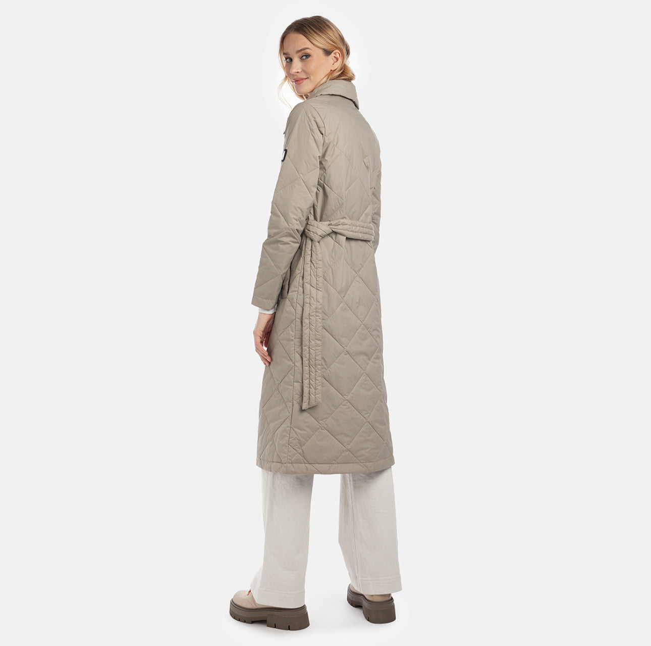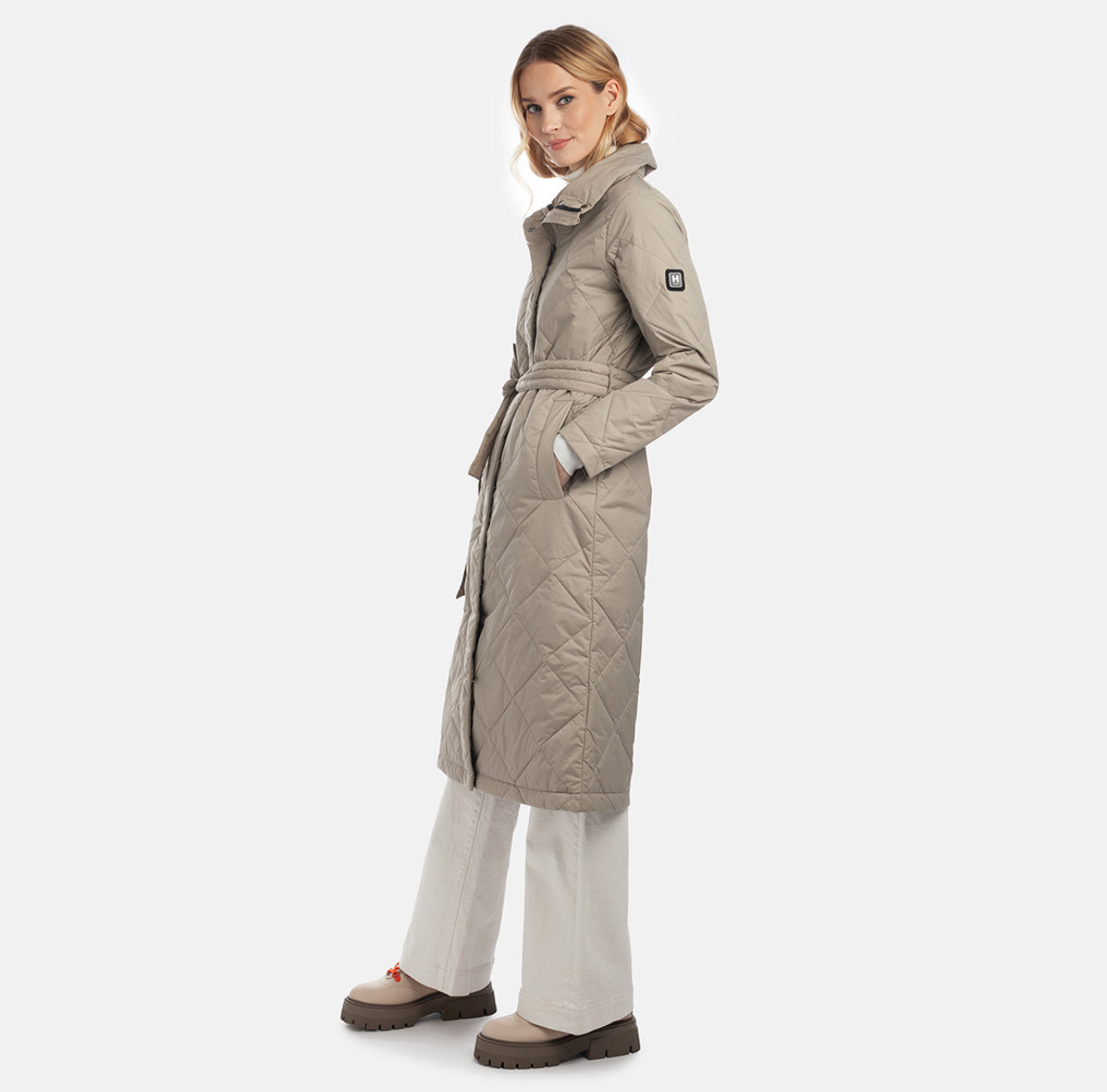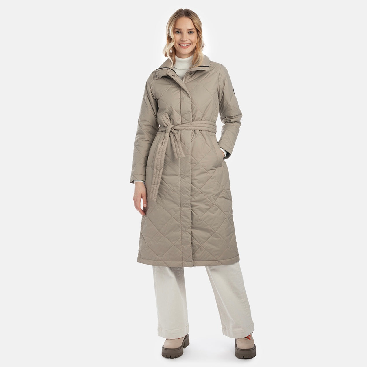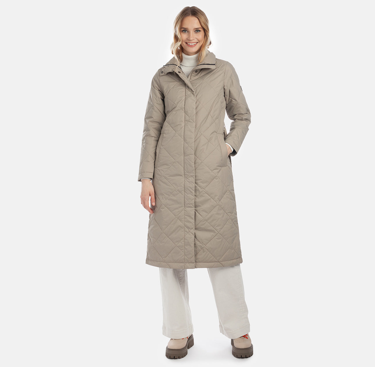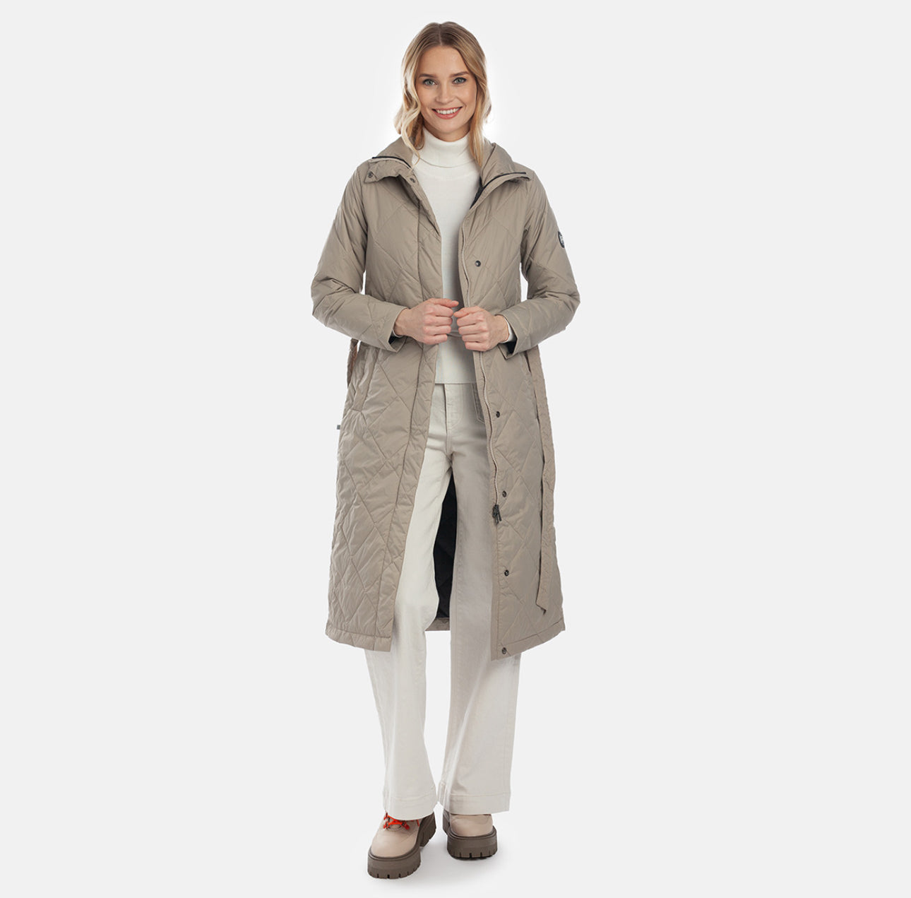 Moteriškas vandenį atstumiantis ir vėjui atsparus paltas su 80 g šiltinimo sluoksniu. Išorinis audinys yra kvėpuojantis ir lengvas. Audinys pagamintas iš perdirbtų pluoštų. Paltas turi minkštą vidinį pamušalą.