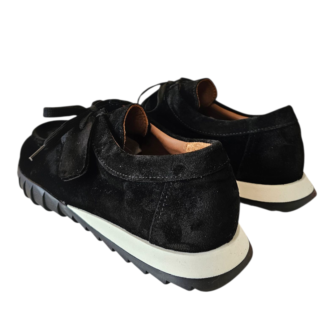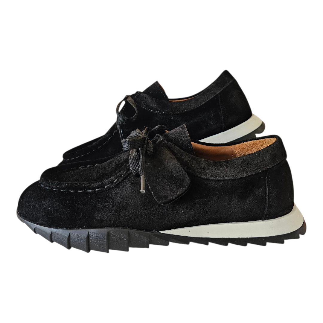 Juodos spalvos, verstos odos bateliai – stilingas ir kartu praktiškas pasirinkimas. Klasikinį dizainą papildo raišteliai, leidžiantys lengvai reguliuoti avalynės prigludimą prie pėdos. Tvirtas, karpuotas neslystantis padas užtikrina stabilumą ir patogumą einant, todėl batai puikiai tinka kasdieniam avėjimui tiek mieste, tiek laisvalaikio metu. Elegancija ir komfortas viename poroje.