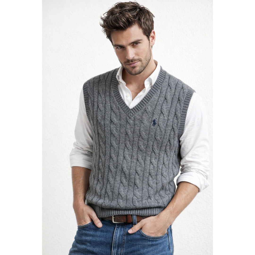 Klasikinė Polo Ralph Lauren pynių rašto liemenė – stilingas ir laikui nepavaldus pasirinkimas ieškantiems kokybės bei elegancijos kasdieniam ar išskirtiniam įvaizdžiui.