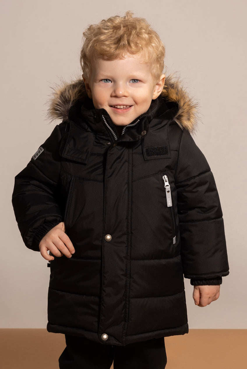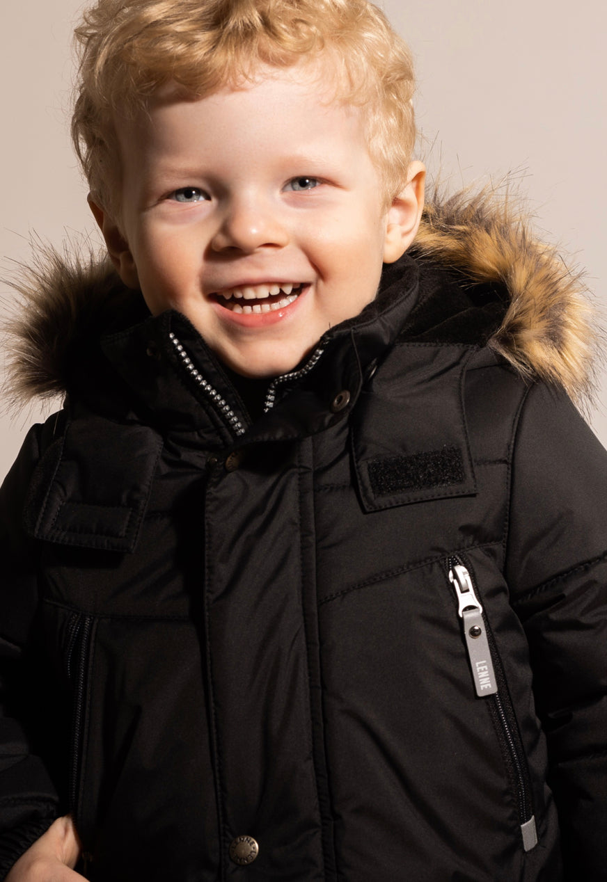 Vienspalvė aktyvaus audinio berniukiška striukė yra geras pasirinkimas šiai žiemai. Ilgesnis kirpimas ir šiltas kailinis pamušalas nugaroje puikiai apsaugo nuo vėjo ir šalčio. Striukė turi dvi gilias užtrauktuku užsegamas šonines kišenes, kuriose patogu įsidėti mobilųjį telefoną ir namų raktus. Striukės gobtuvas turi efektingą kailio apdailą, kurią galima nuimti sagutėmis skalbimui. Striukės dizaine panaudotos šviesą atspindinčios detalės, dėl kurių vaikas matomas net tamsią žiemą.