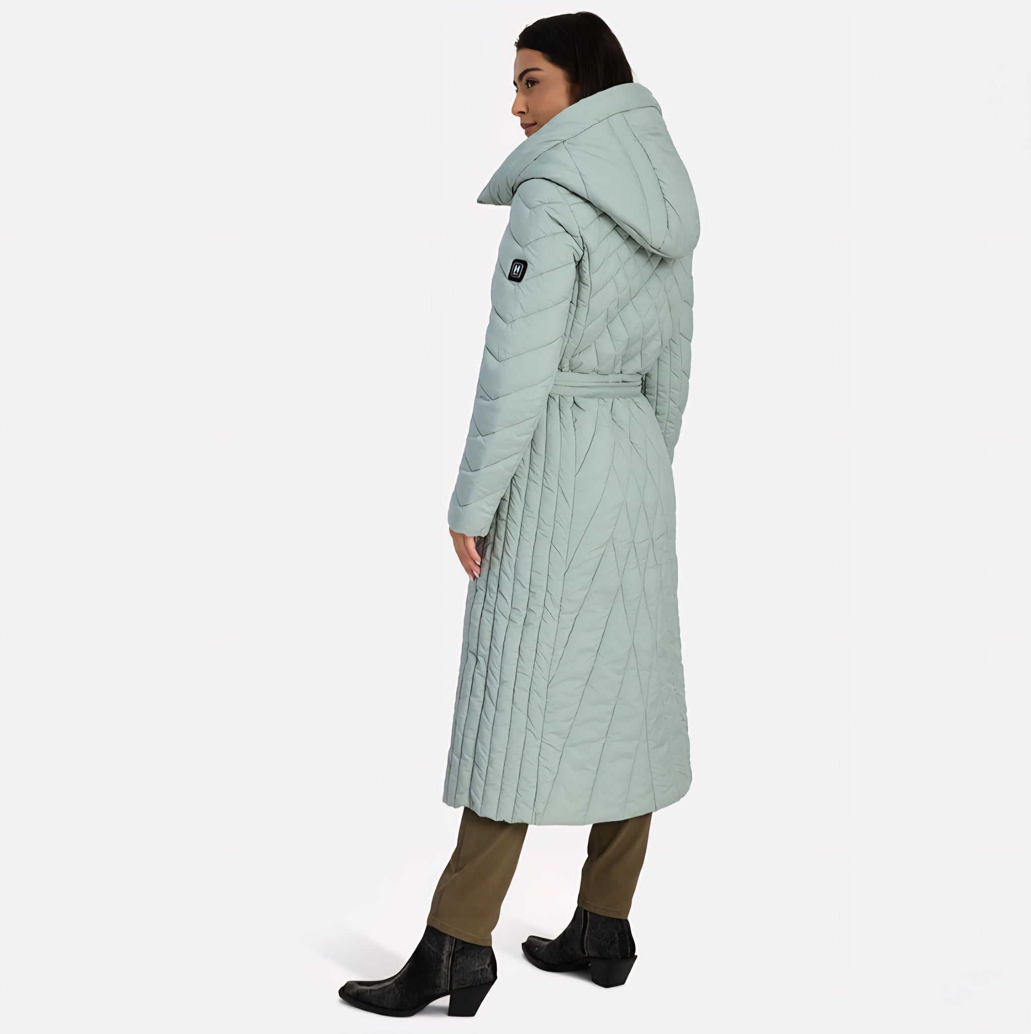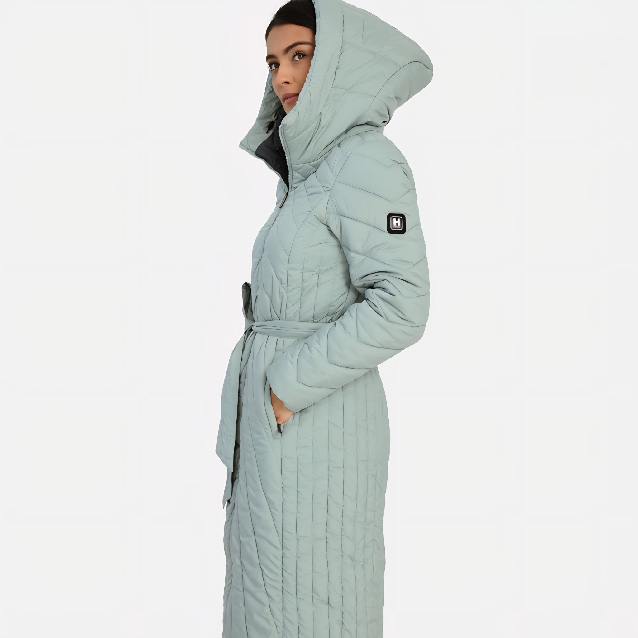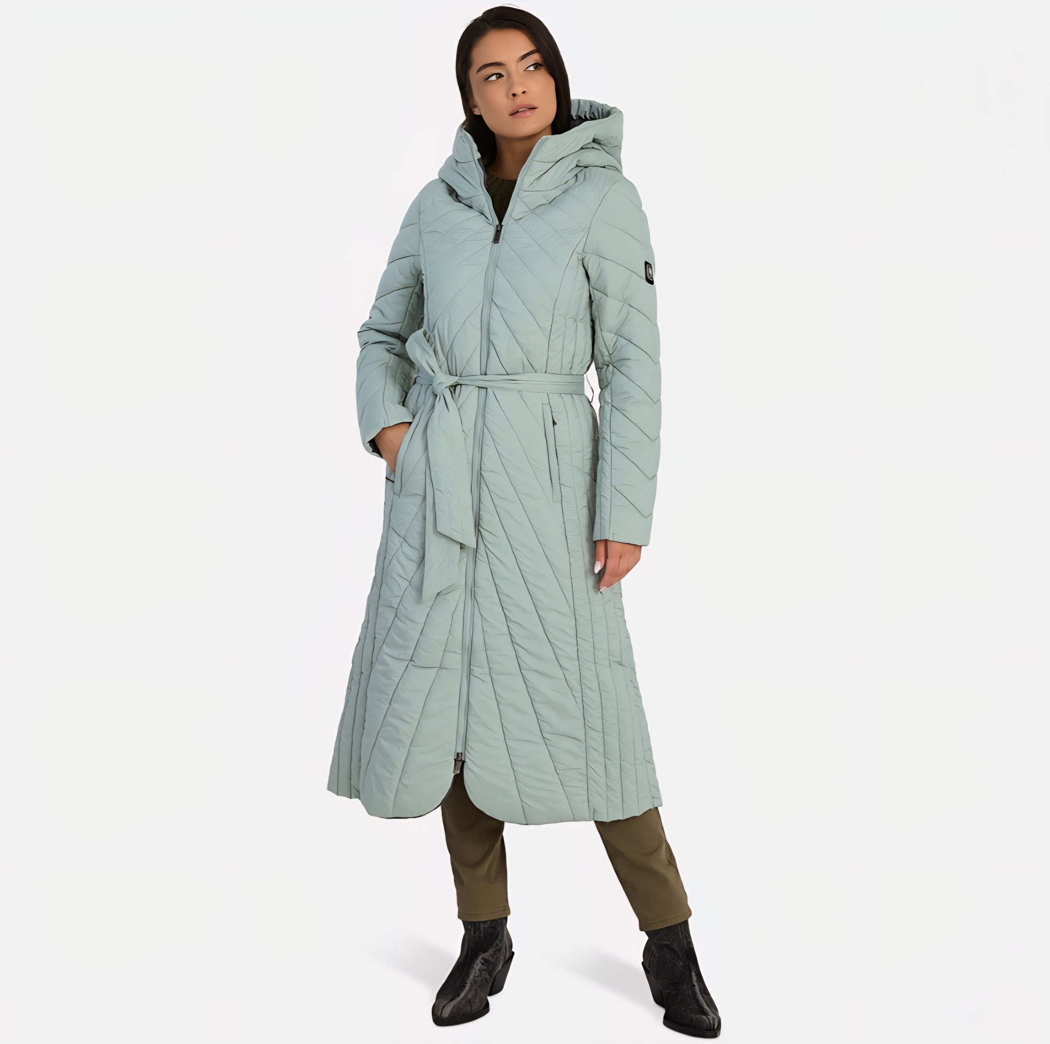 Moteriškas atstumiantis vandenį ir neperpučiamas paltas su 140 g šiltinamuoju sluoksniu. Išorinis audinys laidus orui, lengvas ir atsparus UV spinduliams. Audinys pagamintas iš perdirbto pluošto. Vidinėje palto pusėje minkštas pamušalo audinys. Priekyje dvikryptis užtrauktukas. Kišenės su užtrauktukais.