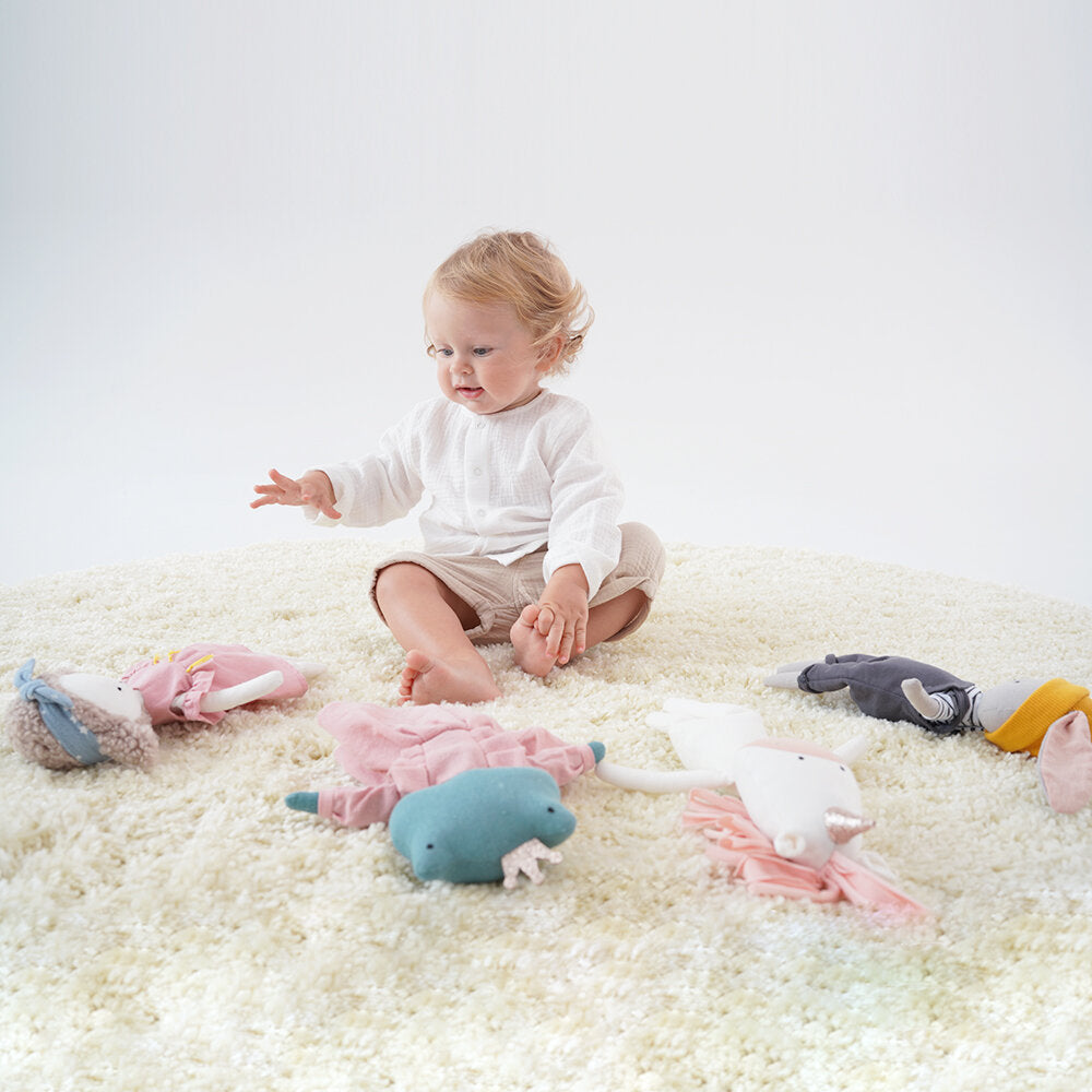 Šis žaisliukas sukurtas iš saugių, natūralių ir aplinkai draugiškų medžiagų, todėl tinka net patiems mažiausiems vaikams nuo gimimo. Kiekvienas žaislas supakuotas į atskirą ekologišką dovanų dėžutę, kuri ne tik apsaugo žaisliuką, bet ir atrodo stilingai – puikus pasirinkimas dovanai.