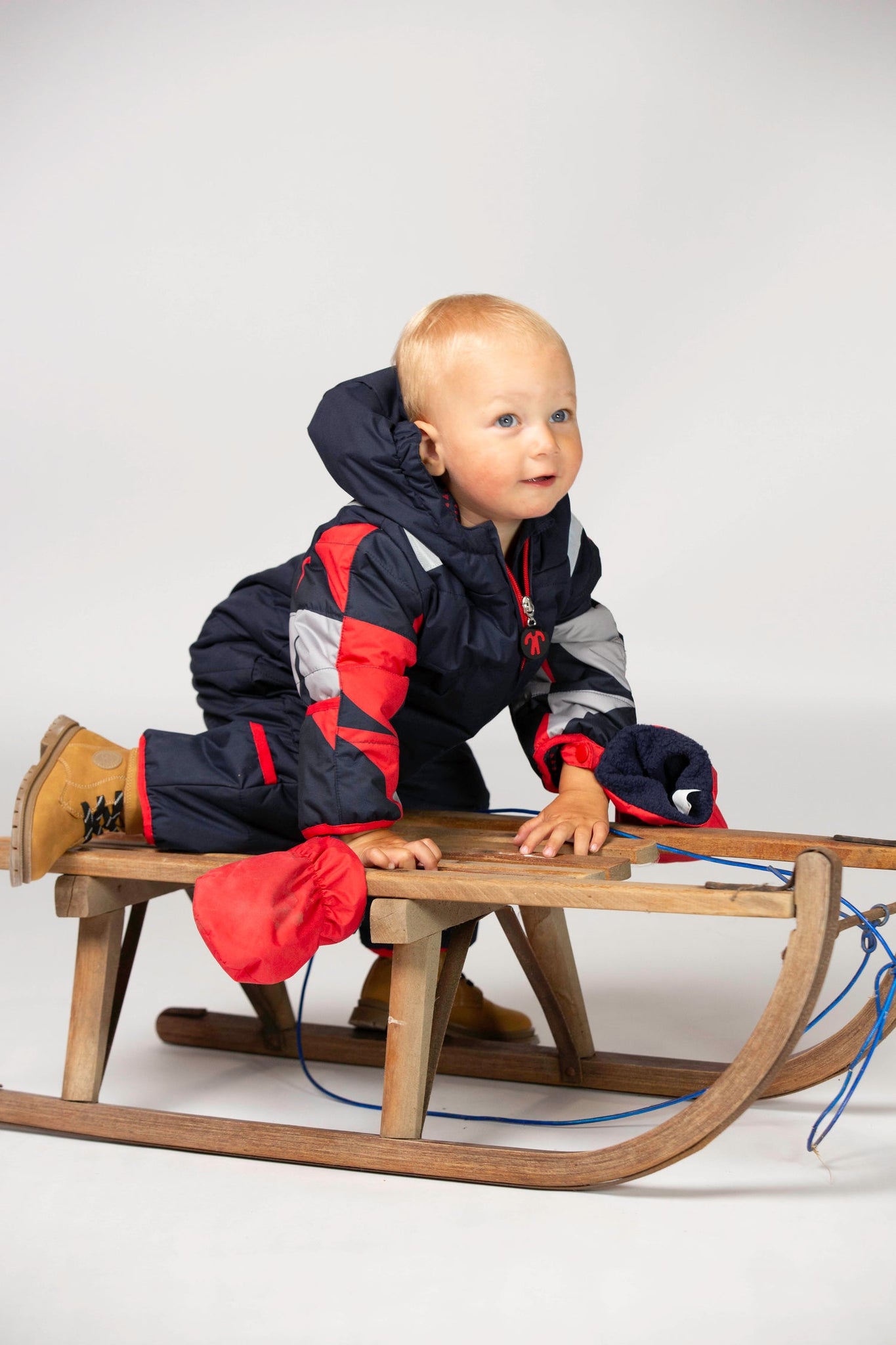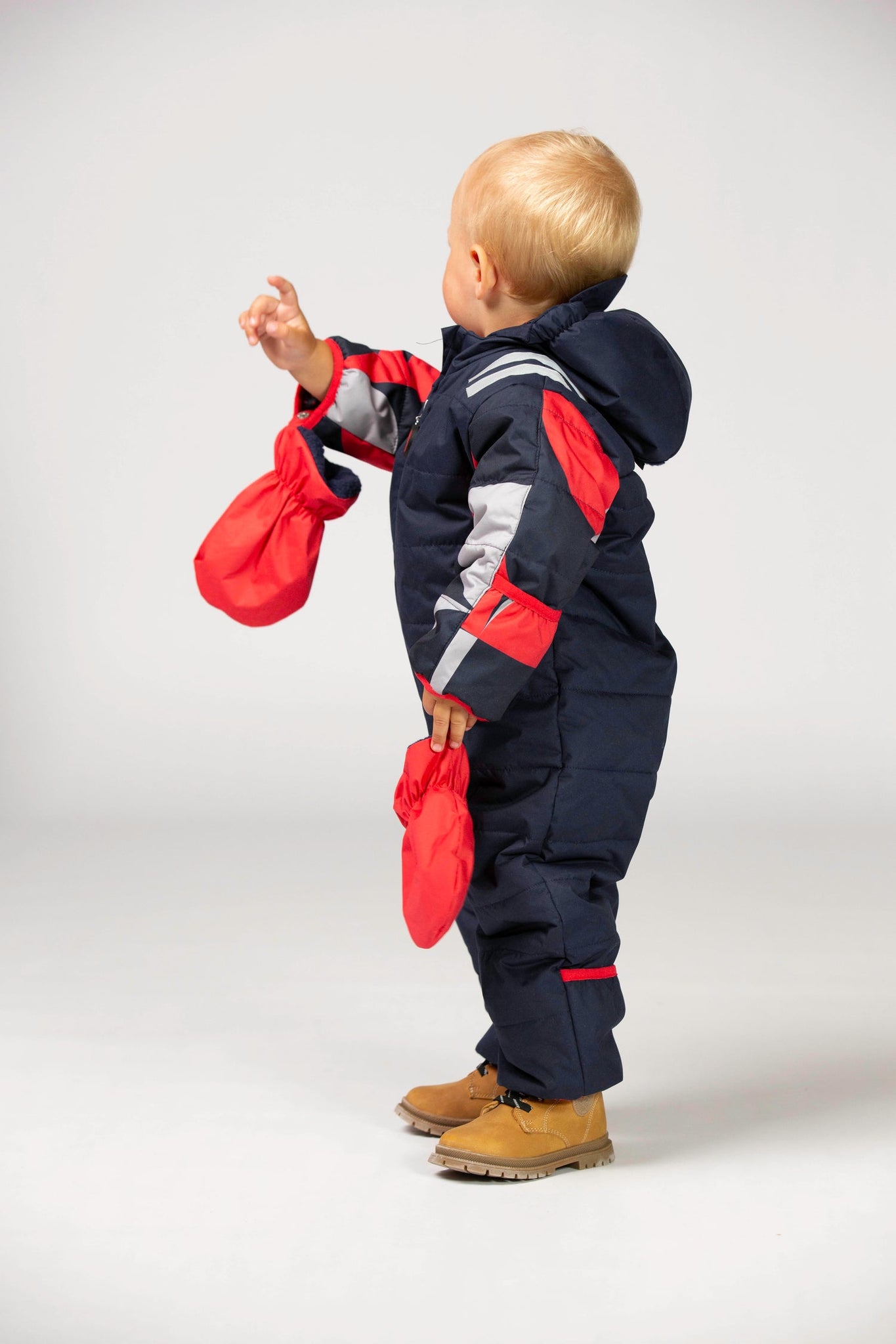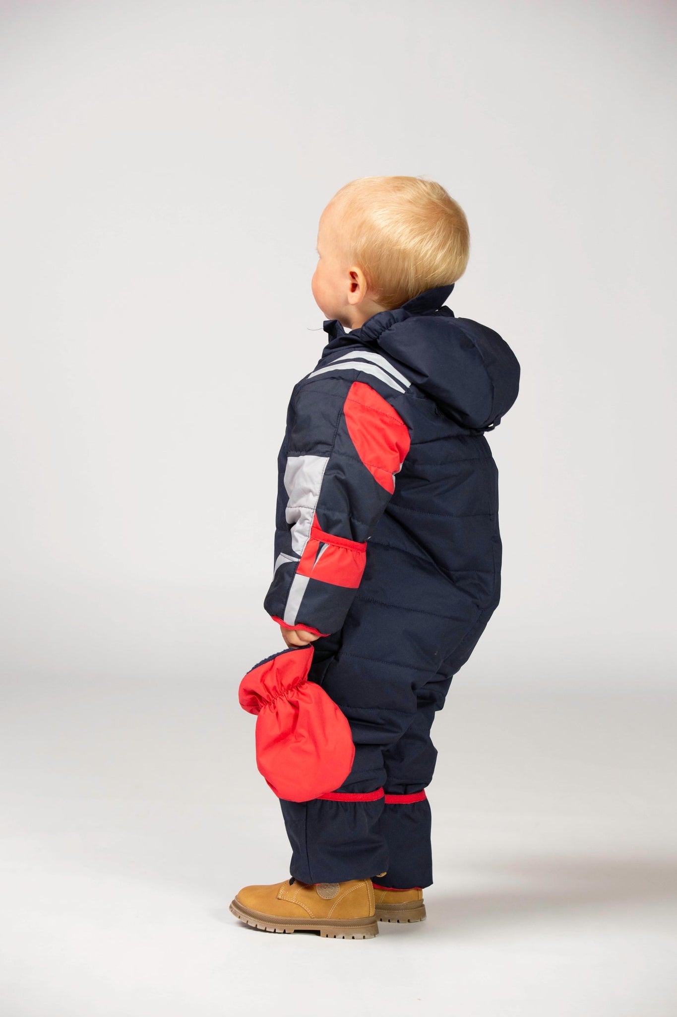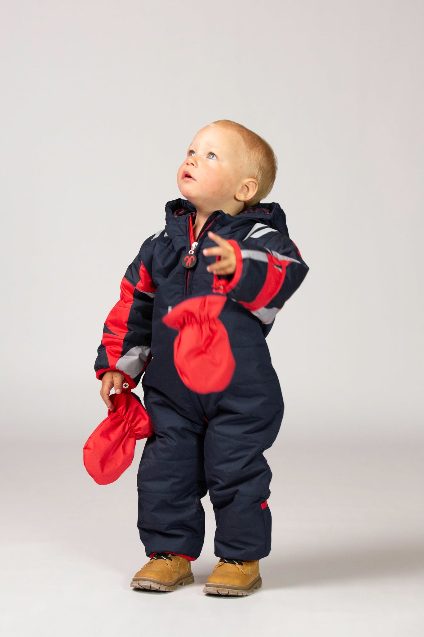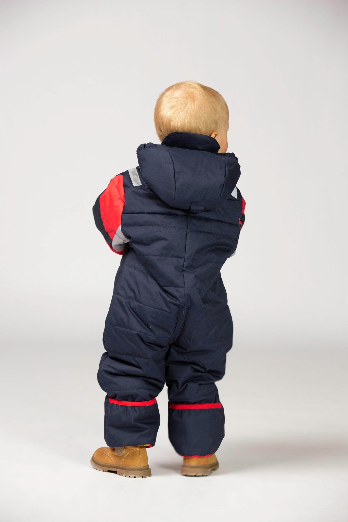 Techninis pašiltinimas užtikrina šilumą net šalčiausiomis dienomis, o ilgas užtrauktukas leidžia greitai ir patogiai pakeisti sauskelnes vos per minutę. Užlenkiamos rankyčių ir pėdučių dalys suteikia papildomos šilumos ir apsaugos nuo šalčio.