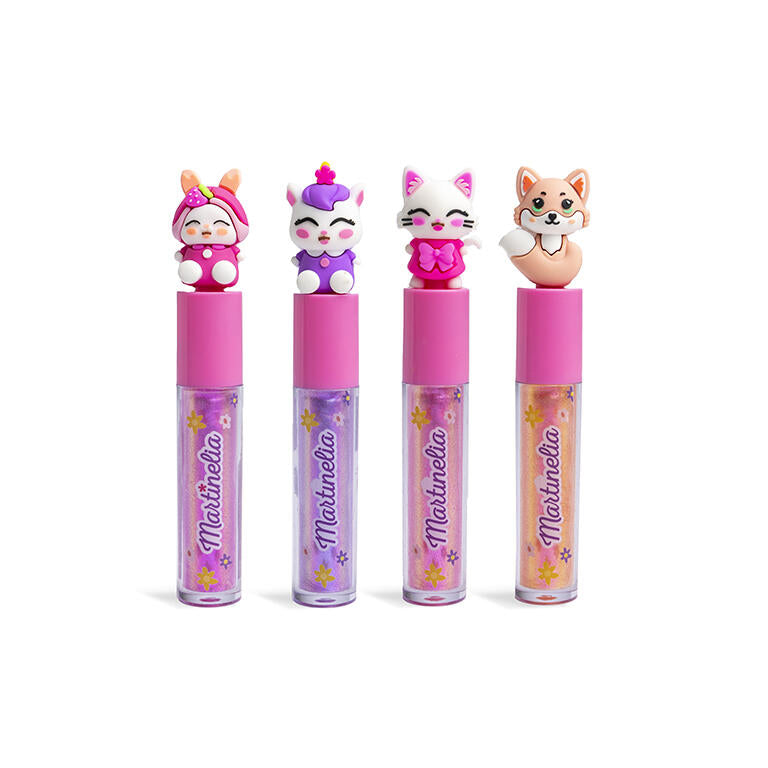 Atrask naują Martinelia lūpų blizgį! Keturi skirtingi skoniai ( braškės , kokosas, vyšnios, persikas) ir malonūs aromatai suteikia unikalią pojūčių patirtį. Dangteliai su mielomis formomis – katės, vienaragio, triušiuko ir lapės – prideda žaismingo žavesio. Leisk savo kūrybiškumui sklisti su šia nuostabia lūpų blizgių kolekcija!